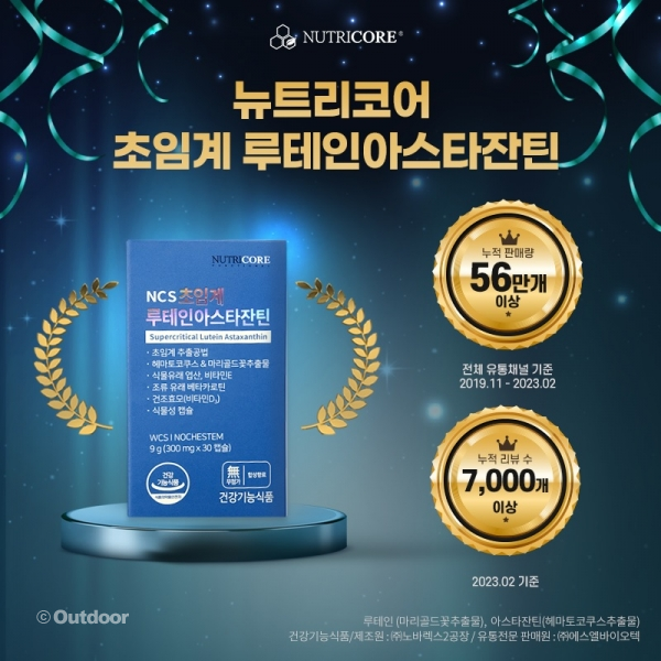눈 건강에 좋은 루테인 섭취! 국가 전산 시스템. 식물성 캡슐. 화학첨가물 NO! ! 내가 선택한 뉴트리코어는 백화점과 마트에서 판매되고 있으며 네이버 쇼핑 루테인 부문 1위를 차지하고 있다.