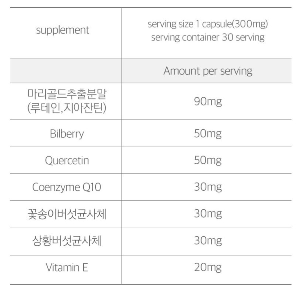 눈의 피로에 대한 보충제 비교 및 보충제 분석 보충제 요약 현대사회에서 전자제품을 자주 사용하는 사람들에게 눈 관리는 매우 중요합니다. 이에 최근 루테인 보충제에 대한 관심이 높아지고 있다. 루테인은 망막 중앙에 위치한 황반에 위치한 성분으로 활성산소를 제거하고 자외선을 흡수하여 안구를 보호합니다. 또한 손상된 세포를 복구하는 능력도 있어 눈 질환 예방에 매우 효과적이다. 따라서 이번 강의에서는 루테인의 효능과 부작용, 루테인 보충제를 올바르게 섭취하는 방법, 루테인이 풍부한 식품과 영양제를 선택하는 기준에 대해 알아보도록 하겠습니다. 황반 변성은 무엇입니까? 황반변성은 망막의 중심에 위치한 황반이 퇴화되어 발생하는 질환입니다. 질병이 진행됨에 따라 중심 시력이 감소하여 시각 장애가 발생합니다. 초기에는 특별한 증상이 없고, 병이 어느 정도 진행된 후에 한쪽 눈에 나타나는 경우가 많기 때문에 눈 건강을 지키기 위해서는 예방이 가장 중요합니다. 노안과 황반 변성의 차이점은 무엇입니까? 많은 노인들이 정기적으로 황반변성을 앓고 있습니다. 두 질병 사이에는 몇 가지 차이점이 있습니다. 노안은 시력이 저하되지만 아무것도 초점을 맞출 수 없는 상태이므로 안경으로 충분히 교정할 수 있습니다. 그러나 황반변성은 근거리 및 원거리 시력 문제를 일으키기 때문에 안경으로 교정할 수 없습니다. 황반 변성의 증상과 특징은 무엇입니까? 황반변성의 주요 증상은 뒤틀리고, 사물이나 글자가 휘어지고, 중앙에 검은 점이 생기는 것입니다. 한쪽 눈에서 30cm 거리에서 Amsler 그리드를 볼 때 중심점이 보이지 않거나 선이 흔들리거나 끊어질 수 있습니다. 이러한 증상이 나타나면 안과를 방문하는 것이 좋으며, 황반변성이 망막신경에 손상을 입힌 경우에는 시력회복이 어려울 수 있습니다. 따라서 예방이 최선의 치료로 여겨지고 있으며, 노화에 따른 황반 건강에 도움을 주기 위해 루테인과 아스타잔틴을 함유한 영양제가 각광받고 있다. 시력 상실은 시력의 90%를 차지하는 중심시력이 약해지면 발생합니다. 조기 발견이 중요하며 다른 증상이 없는 경우에도 종종 발생합니다. 황반변성이 한쪽 눈에만 나타나면 다른 쪽 눈의 시력 교정이 어려울 수 있습니다. 유전적 요인과 흡연이 황반변성을 유발할 수 있으며, 눈의 노화가 가장 잘 알려진 요인입니다. 연구에 따르면 황반 색소 밀도는 나이가 들면서 점차 감소하여 50대와 60대의 사람들은 20대에 비해 황반 색소 밀도가 절반도 되지 않습니다. 아스타잔틴과 루테인은 태어날 때부터 수정체, 망막, 황반부 등 눈의 중요한 부분에 분포되어 있으며 25세 이후부터 감소하기 때문에 황반부의 건강을 유지하기 위해서는 루테인을 섭취해야 합니다. 그러나 루테인과 제아잔틴은 체내에서 생성되지 않으므로 외부에서 보충해야 합니다. “블루라이트 대세와 루테인 아스타잔틴” PC, 스마트폰 등 전자기기에서 발산되는 블루라이트는 눈 건강에 악영향을 미칠 수 있다. 블루라이트는 자외선 다음으로 에너지가 강한 광선입니다. 청색광은 눈의 망막에 직접적인 광화학적 손상을 일으킬 수 있으므로 주의해야 할 요소입니다. 이때 블루라이트를 흡수하는 루테인과 아스타잔틴이 눈을 보호하는데 도움을 줄 수 있다. 전자기기 사용을 줄이는 것은 눈 건강을 지키는 가장 기본적인 방법입니다. 하지만 현실적으로 어렵기 때문에 영양제를 섭취하고 블루라이트 차단 필터를 사용하는 것이 좋습니다. 노화는 눈 건강에 악영향을 미칠 수 있는 산화 스트레스를 촉진합니다. 과도한 활성산소는 심장병, 암 및 제2형 당뇨병과 같은 질병을 유발할 수 있으므로 항산화 작용은 건강에 매우 중요합니다. 항산화 효과를 통해 루테인은 활성 산소 종과 산화 스트레스 수준을 줄여 건강을 지원합니다. 특히 루테인은 적색광을 이용하여 활성산소를 제거하는 효과가 탁월하다. 따라서 루테인은 눈 건강을 지원하고 중요한 항산화제 역할을 하여 유해한 자유 라디칼로부터 눈을 보호합니다. 항산화 수치는 나이가 들면서 감소하므로 정기적으로 루테인을 섭취하는 것이 눈 건강에 중요합니다. 루테인은 망막 뒤쪽에 위치한 황반에 축적되는 식이성 카로티노이드입니다. 황반은 정상적인 시력을 유지하는 데 중요한 역할을 합니다. 연구에 따르면 루테인이 풍부한 음식을 섭취하면 노화 관련 황반 변성의 위험을 줄일 수 있습니다. 루테인은 몸에 흡수된 후 주로 눈의 황반이나 수정체로 운반되므로 꾸준한 루테인 섭취는 눈 건강에 매우 중요합니다. 따라서 루테인은 백내장과 황반 변성의 발병률을 효과적으로 줄일 수 있습니다. 루테인은 또한 효과적으로 백내장을 예방할 수 있습니다. 연구에 따르면 루테인을 복용하는 남성은 그렇지 않은 남성보다 백내장 위험이 낮습니다. 따라서 루테인을 꾸준히 섭취하면 노화로 인한 질병 및 백내장 증상 개선에 도움을 줄 수 있다. 또한 안구건조증은 이물질이 눈에 들어가 충혈, 시야흐림 등의 증상도 유발할 수 있는데 루테인은 이러한 증상 완화에 도움을 줄 수 있다. 루테인은 뇌 기능을 지원합니다. 특히 인