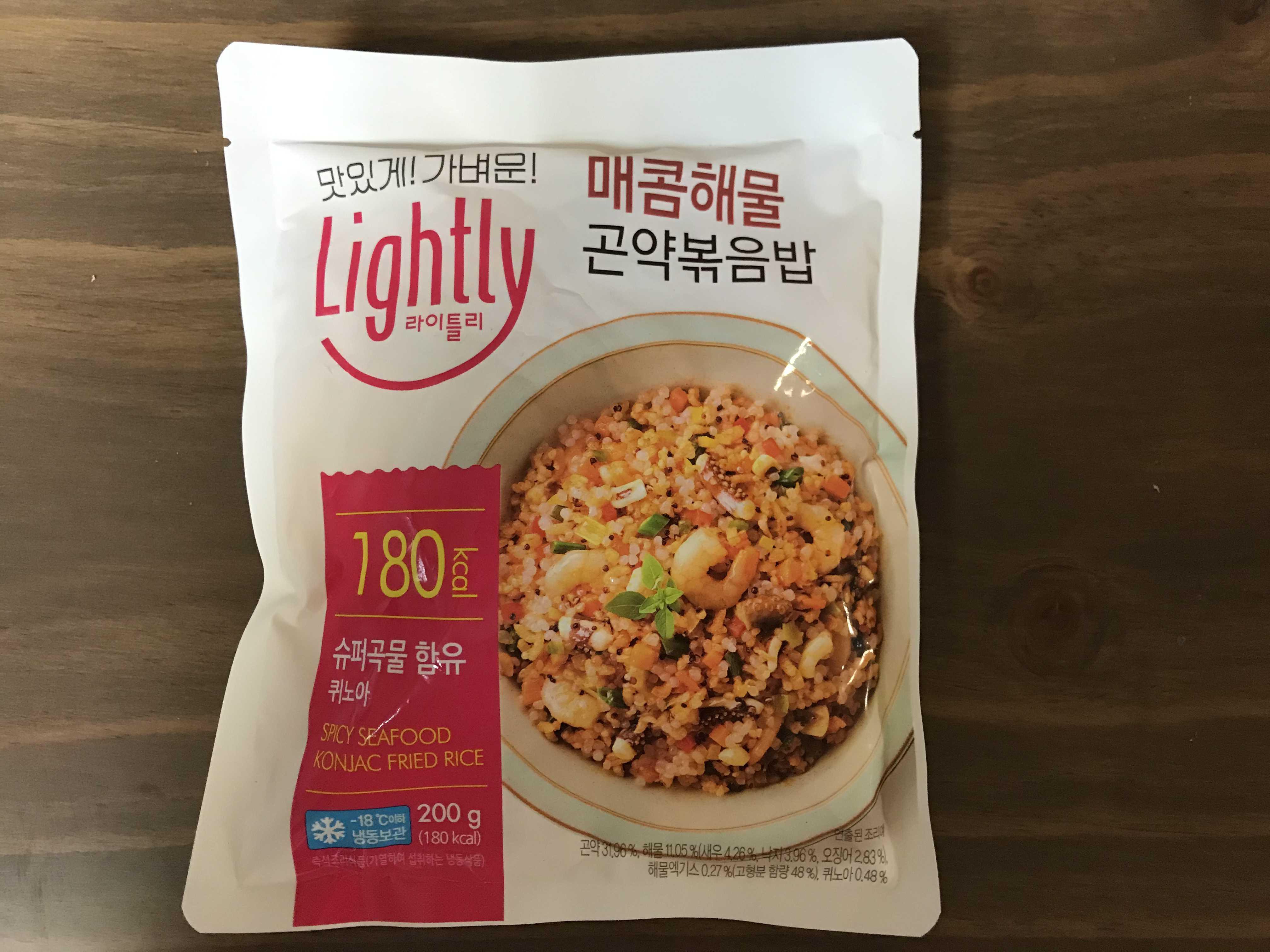 ” 가볍게 곤약밥 흑미, 현미 퀴노아, 귀리 “탄수화물이 풍부한 쌀의 함량을 줄이고, 쌀과 유사한 식감과 모양을 갖도록 가공한 쌀 모양의 곤약을 첨가하여 포만감을 높이고 부담을 줄였습니다. . 7.5kcal로 맛이 전혀 없고 칼로리도 적당하지만 식감이 백미보다 조금 더 단단한 것이 특징이다.