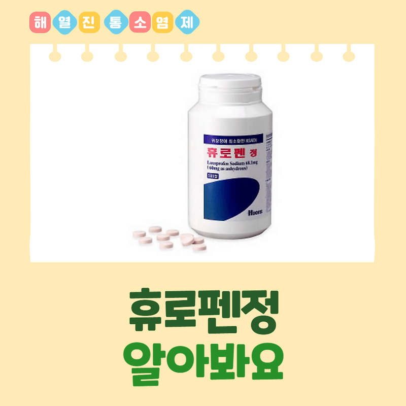 휴로펜정의 효능 휴로펜정은 이부프로펜을 주성분으로 하는 비스테로이드성 소염진통제(NSAID)로 염증 및 통증 감소에 효과가 있습니다. 주로 류마티스 관절염, 골관절염, 요통, 근육통, 두통, 발열 등의 증상에 사용됩니다.