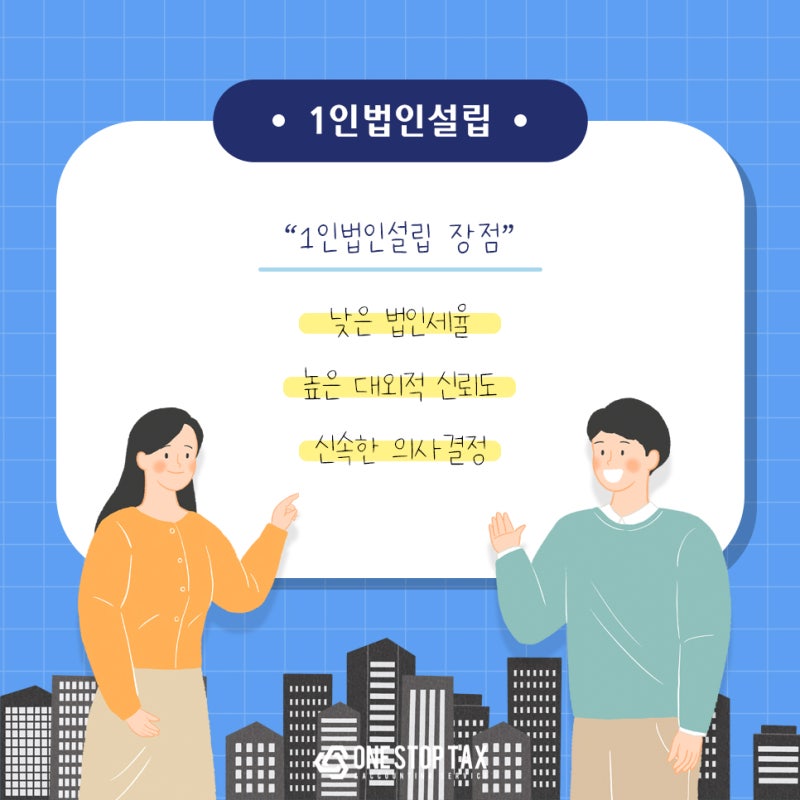 안녕하세요. 개인사업자와 달리 사업자는 (1) 사업위험이 적고, (2) 매출이 늘어나도 소득세 부담이 적고, (3) 대외신용도가 높아 투자나 대출에 유리합니다. 과거에는 창업의 문턱이 매우 높았지만, 지금은 각종 제도가 완화되면서 창업이 더욱 쉬워졌고, 특히 지금은 혼자 창업하는 사람들이 이를 활용하기 위해 창업을 고려하고 있다.오늘은 기업등록 헬프미에 대해 정리해보겠습니다<设立1人公司的7大要求>. 1인 법인설립 안내 A to Z