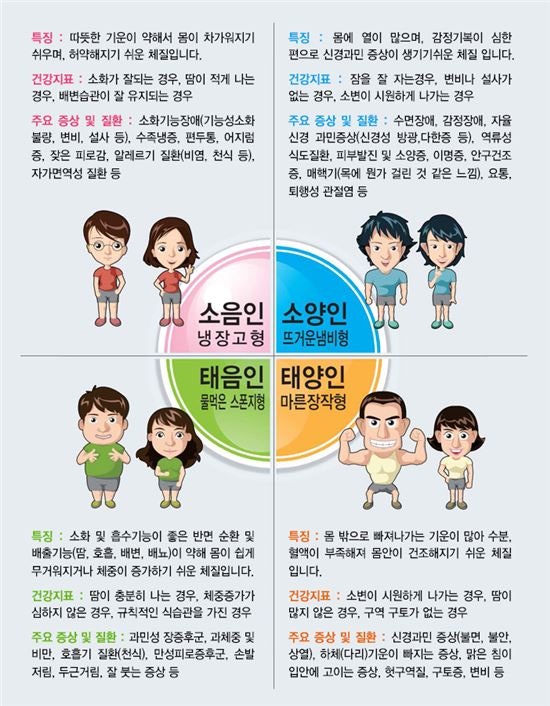 이는 사상의학을 알면 이해하기 더 쉽습니다. 사상의학은 조선후기 이제마라는 사람이 인간의 체질을 4가지 유형으로 나누어 각 유형의 특성과 특성에 대한 지침을 제시하여 창안한 의학이론이다. 태양인/태음인/소양인/소음인인 이제마가 창시한 사상의학은 장과 우리 몸의 각 부분의 대립관계를 밝혔을 뿐 일부 장의 기능만을 제시했을 뿐 나머지 장과의 관계를 이해하지 못했다. 따라서 공유에 있어서는 완벽하지 않다는 리뷰가 있습니다.